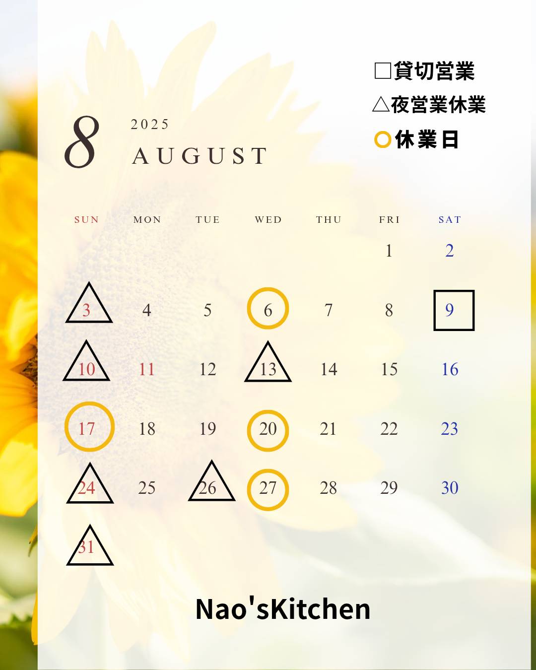 8月の定休日のお知らせ!
